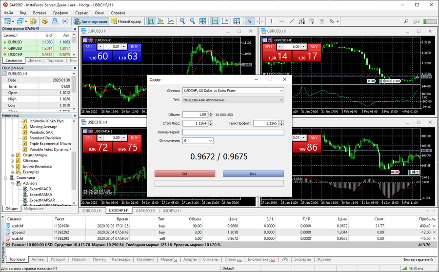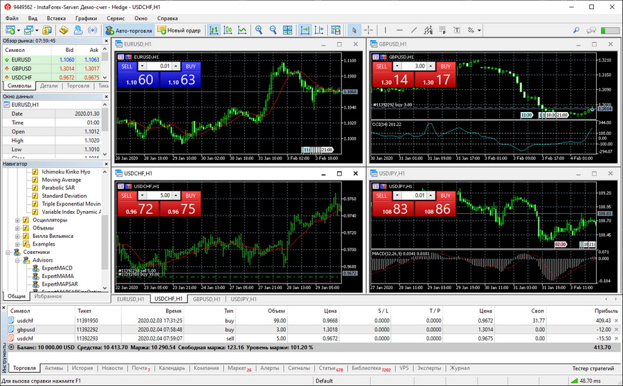 ИнстаФорекс-тің әрбір клиенті әлемдік қаржы алаңдарында жұмыс жасауда трейдердің мүдделері мен қалауларына барынша жауап беретін платформаны таңдау мүмкіндігіне ие. Бүгінгі таңда компания танымал сауда терминалдарының бірнеше түрін ұсынады. Айта кету керек, әрбір платформа трейдердің әр түрлі міндеттерін жүзеге асыруға жауап береді.