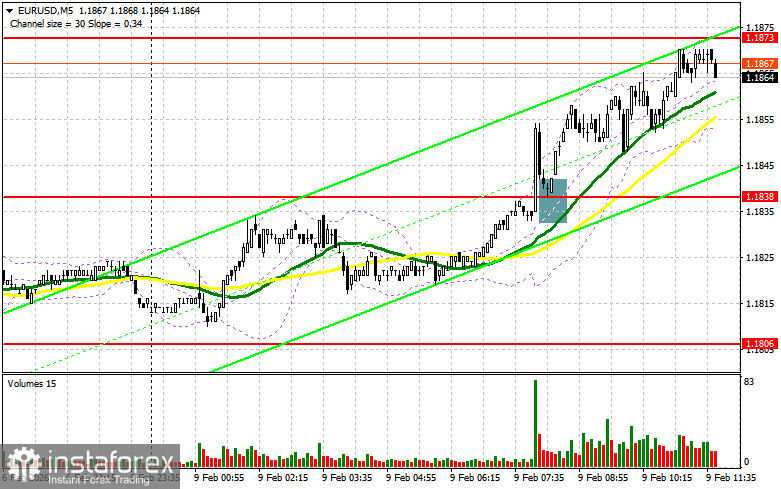 В своем утреннем прогнозе я обращал внимание на уровень 1.1838 и планировал от него принимать решения по входу в рынок. Давайте посмотрим на 5-минутный график и разберемся с тем, что там произошло. Прорыв и обратный тест 1.1838 привели к точке входа в длинные позиции, что вылилось в рост пары в район целевого уровня 1.1873. На вторую половину дня техническая картина не пересматривалась.