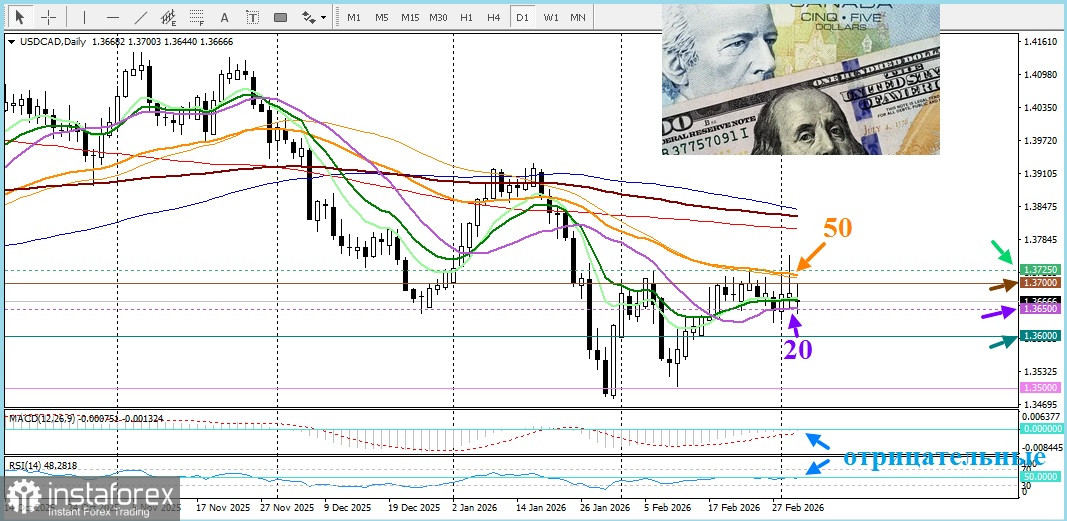 04.03.2026 18:59Пара USD/CAD торгуется чуть выше уровня 1,3650, где проходит 20-дневная SMA. Цены сохраняются в двухнедельном диапазоне, что побуждает участников рынка к осторожности на фоне неоднозначных фундаментальных сигналов.