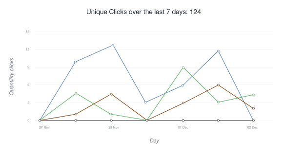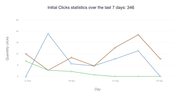 • The Unique Clicks chart shows the number of users who followed your affiliate link for the first time from the given IP address over the past 24 hours.