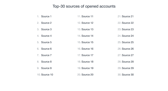 • You can trace the general statistics on the registered accounts, pinpoint the fruitful months, mark a slump in the referring activity, or find the reasons to search for a new, more efficient marketing strategy.
