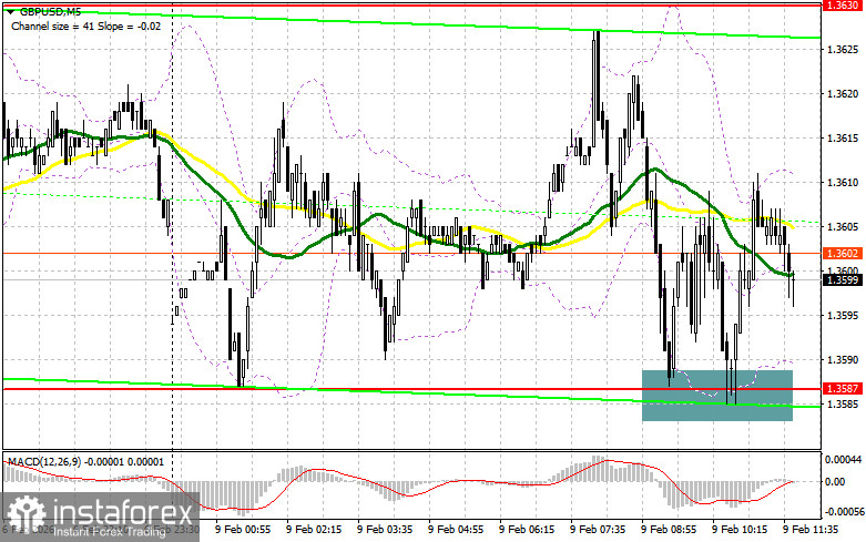 В своем утреннем прогнозе я обращал внимание на уровень 1.3587 и планировал от него принимать решения по входу в рынок. Давайте посмотрим на 5-минутный график и разберемся с тем, что там произошло. Снижение и формирование ложного пробоя в районе 1.3587 привели к точке входа на покупку фунта, что вылилось в рост на 20 пунктов. На вторую половину дня техническая картина не пересматривалась.
